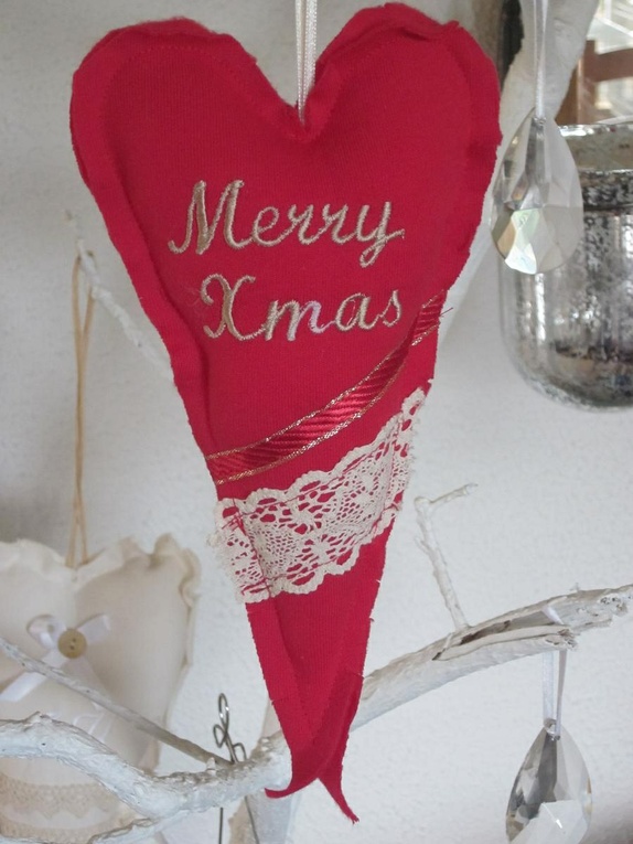 Nå er det snart jul igjen :)Pynt opp med et koselig hjerte med broderi og bånd.
