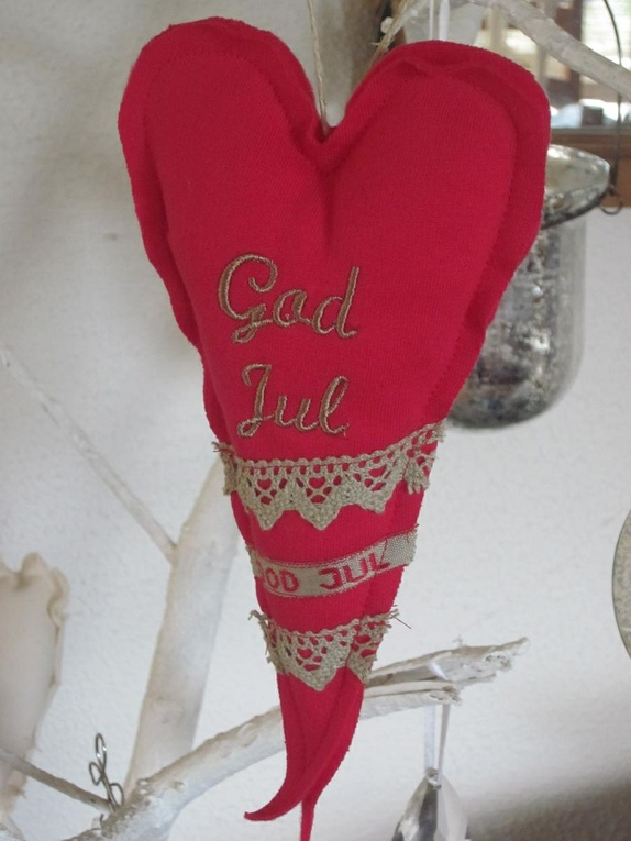 Nydelig pyntehjerte med boderi " God jul" og pyntet med bånd.