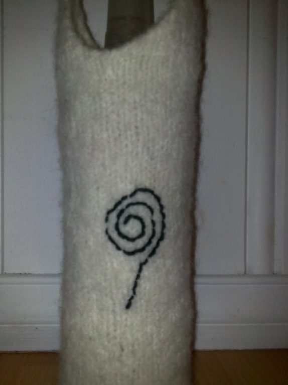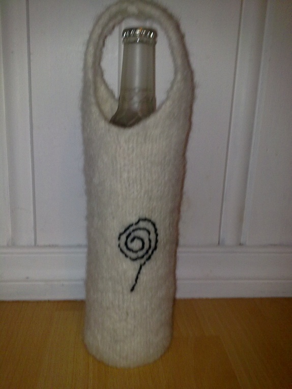 Strikka og tova vinvesker, flotte gaver.Kan bestilles i andre farger.Hvit med svart pynt.
