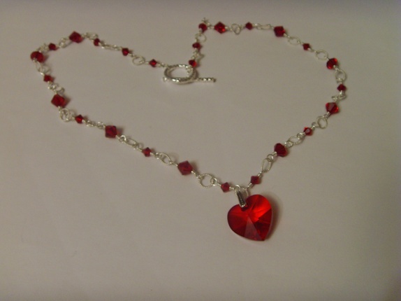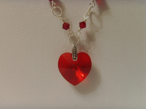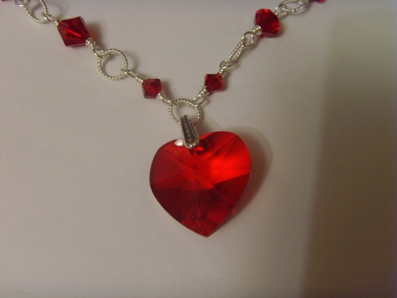 Anhenget er et 18mm stort swarovski hjerte i fargen Siam. Krystallene er også i den samme nydelige dype rødfargen.