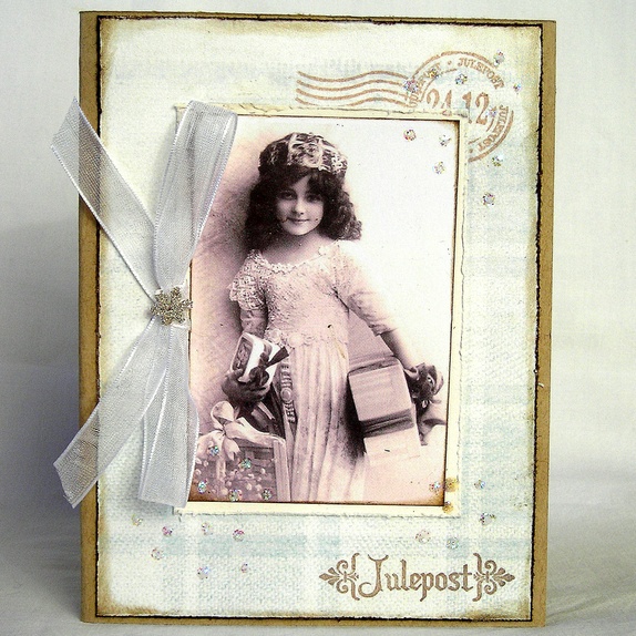 ♥ JUL ♥ Kort med vintage julemotiv og sløyfe