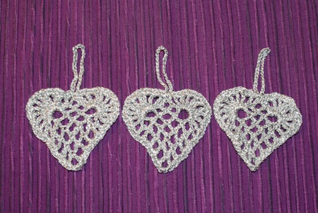 Fine å henge på juletreet eller å dekorere med ellers i huset.Hjertene er noe stivet slik at de henger pent.