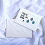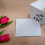 Kortet er brettet, og konvolutt medfølger. Størrelse A6.