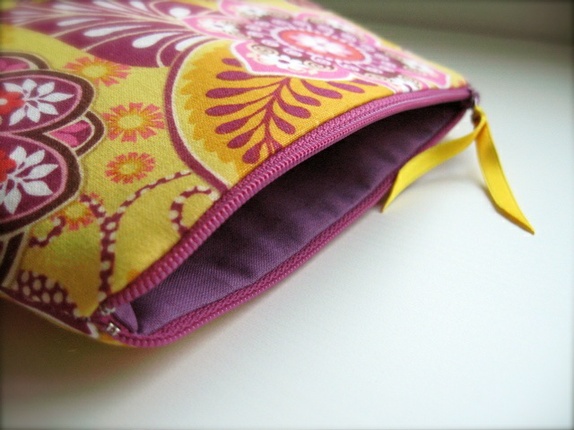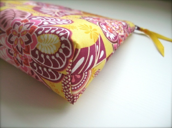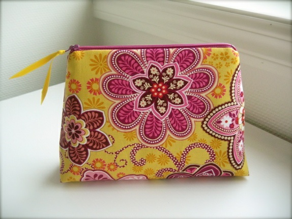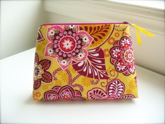 Enkel og elegant pung i japansk bomull i varme gule, rosa og lilla farger.
