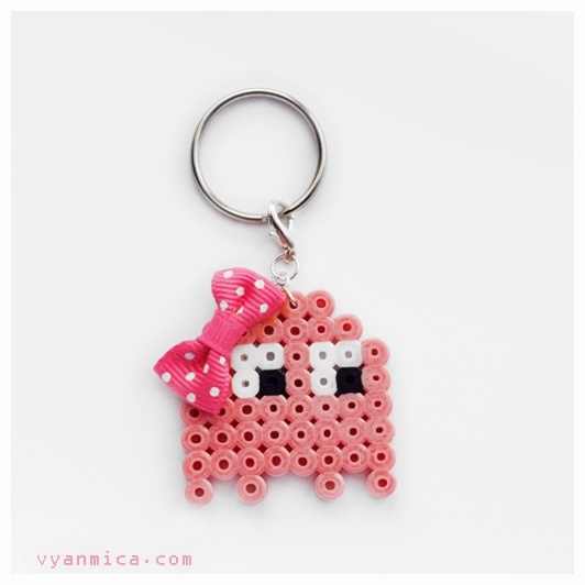 Motiv: Pacman ghost, dataspill, kjærlighet, sukkersøtt, sløyfe, polka dotsFarger: Rosa, hvit, svartStr: Selve spøkelset er ca 4 x 4 cm,og garantert et av verdens søteste spøkelser :O) ♥