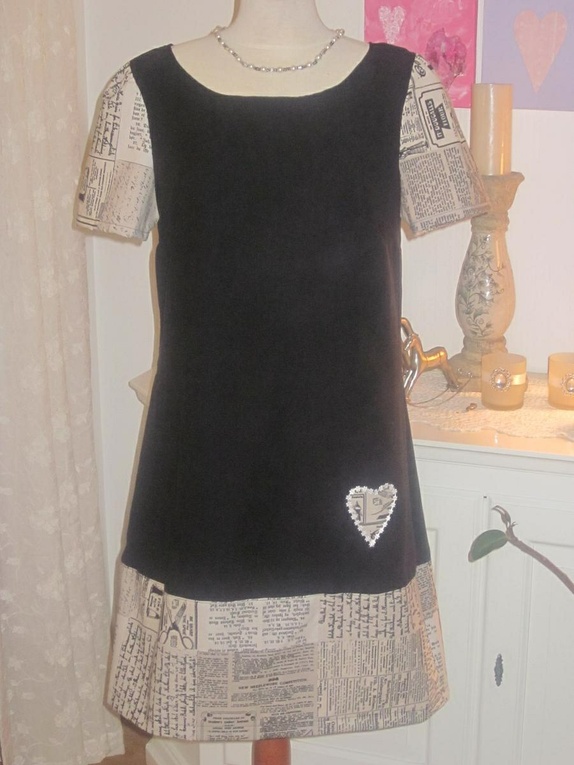 Kjole sydd i sort stoff som føles som "semsket skinn".Kjolen er utrolig myk og behagelig i stoffet.