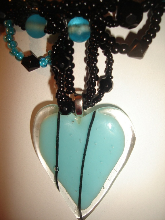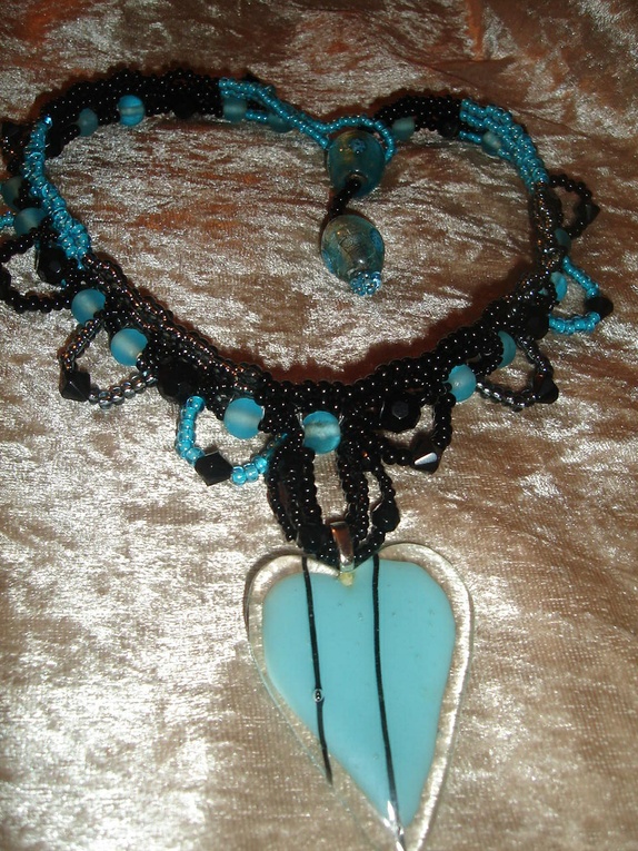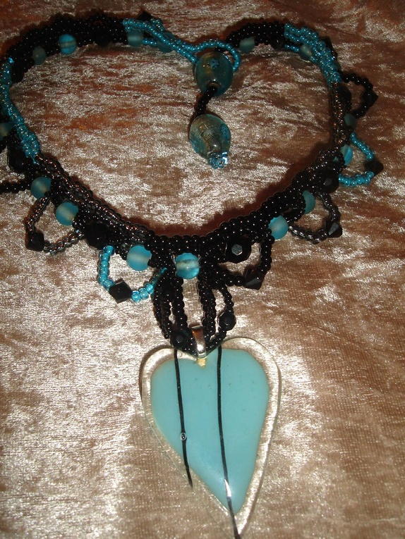 Jeg bruker kun glass, krystaller, ferskvannsperler, skjell, dichroic-glass, håndlagde perler og sead-beads m.m. De fleste smykker har regulerbare låser. Øredobbene har ekte sølvkroker.