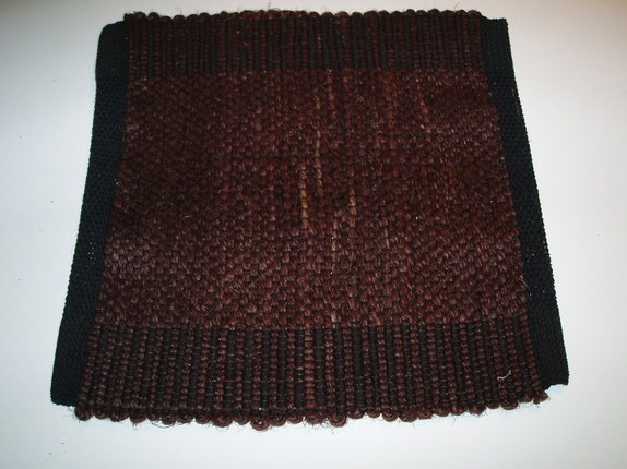 Gryteunderlag med sort renning i bomull og jute innslag. Håndvask på 40 grader. Størrelse 25 x 26 cm.
