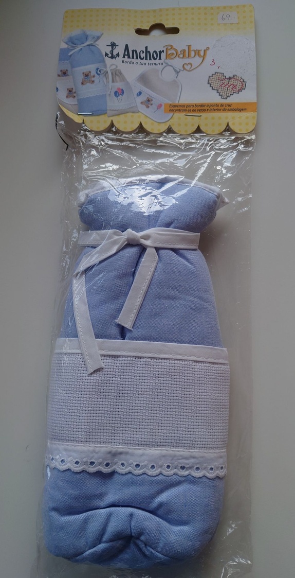 Flaskepose med plass til broderi på. Ca 12•24 cm.Blå 💙