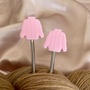 Sett med 2 stk maskestoppere som passer fra 2,5 mm pinner og oppover. Stopperne måler 2 x 2,3 cm.