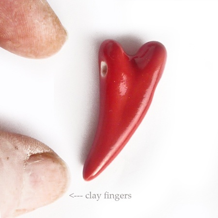 Buet rødt porselenshjerte