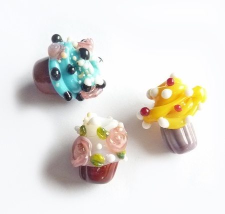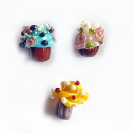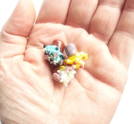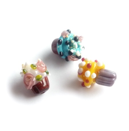 Håndlagde lampworkperler i glass.
