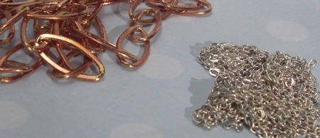 Den eine har store løkker og er koparbelagt, 63 cm lang.