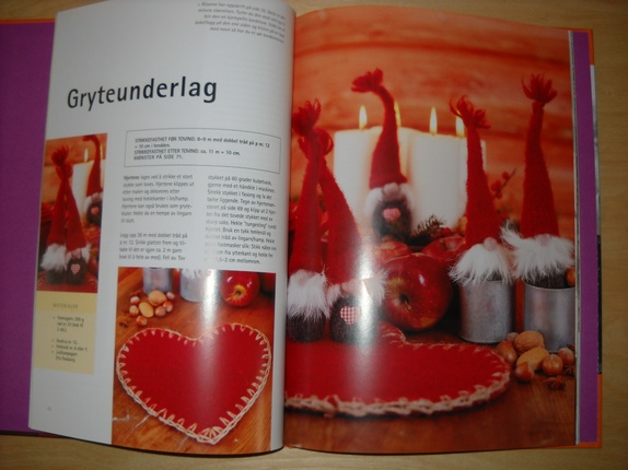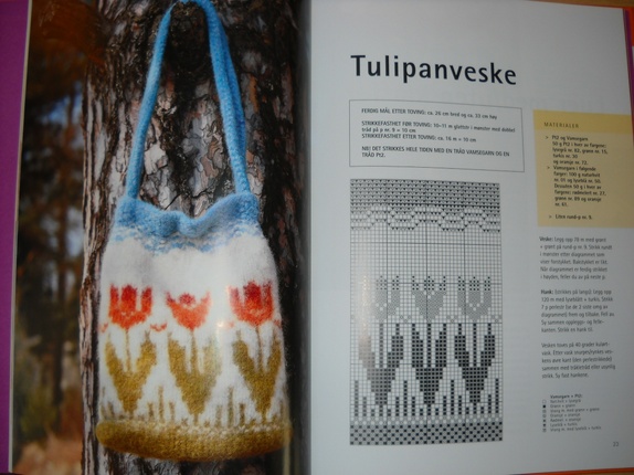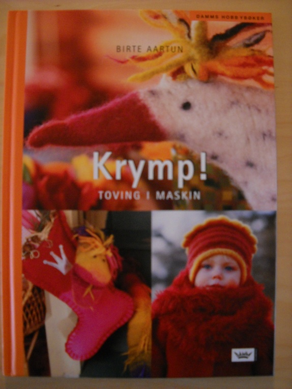 Jeg selger boka "Krymp! Toving i maskin" av Birte Aartun. Det er mønster og beskrivelse av luer, votter, vesker og interiørting i den. Norsk tekst.
