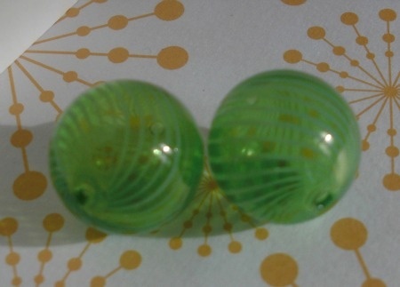 Grøne glassperler som er blåst for hand.Ca 2 cm i diameter.