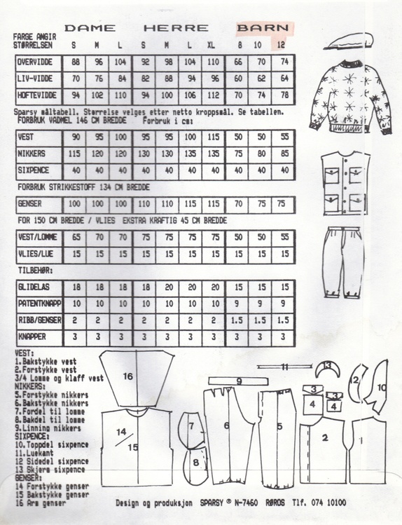 Ubrukt mønsterpakke fra Sparsy.Ferdig utklippet symønster.Porto inkludert i pris.