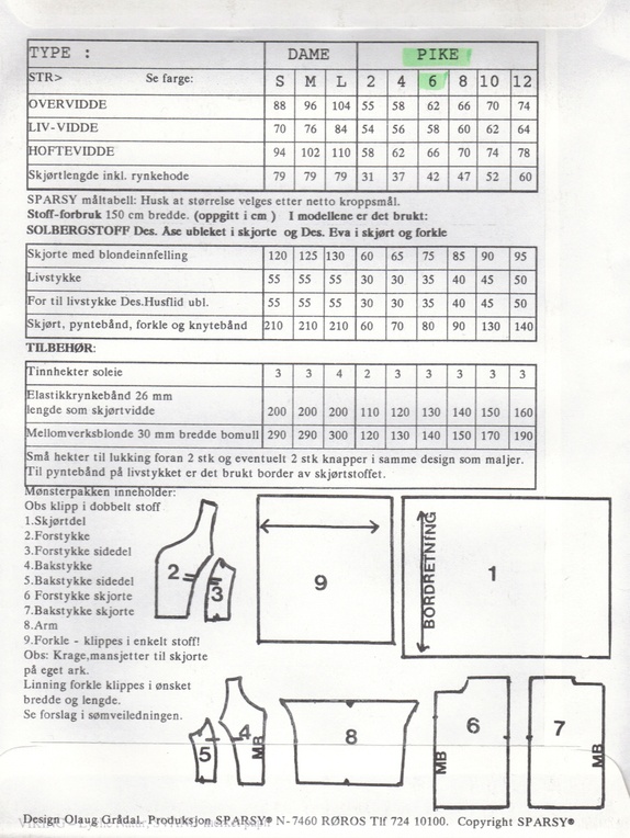 Ubrukt mønsterpakke fra Sparsy.Ferdig utklippet symønster.Porto inkludert i pris.
