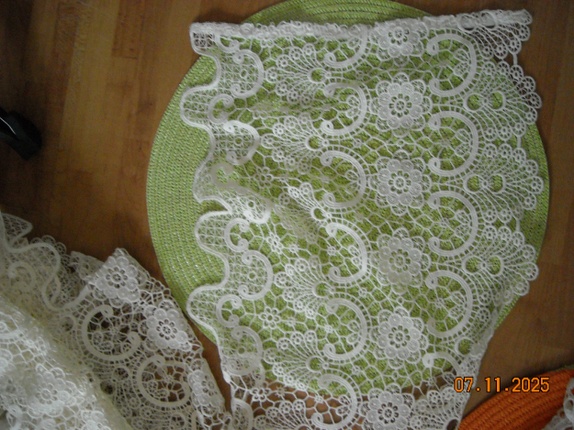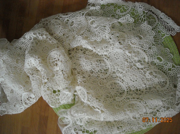 Denne kremaktige blonden var på en gardin som ble kjøpt i Belgia på tidlig 60 tallet.Perfekt.Det er tungekant oppe og nede.Den er hele 35 cm bred og 4 meter