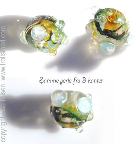 Trollsmeden lager selv både porselensperler og lampworkperler (perler som smeltes på åpen flamme av glass-stenger og formes mens glasset er mykt og seigt)