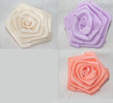 3 roser i forskjellige farger til å pynte hva du vil, f.eks en veske, en hårstrikk eller ett plagg. Diameter ca. 6 cm.