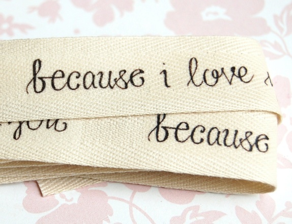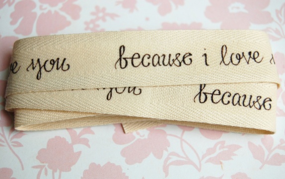 Because I love you bomullsbånd100 cm langt og 2 cm bredt.Teksten repeteres 11 ganger.