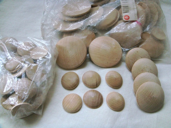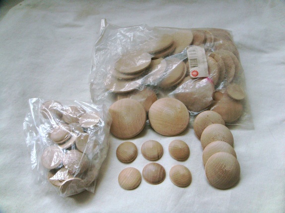 Pakken har 66 stk knappeformer/treknapper i tre størrelser. 4 stk treknappeform 40 mm 30 stk knappeformer 50 mm 32 stk knappeformer 25 mm.