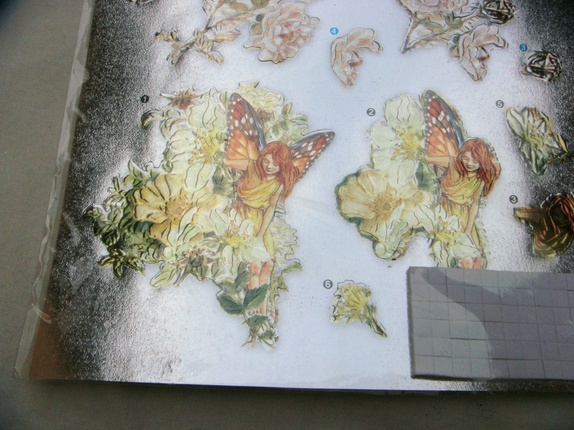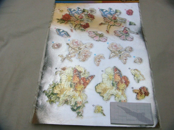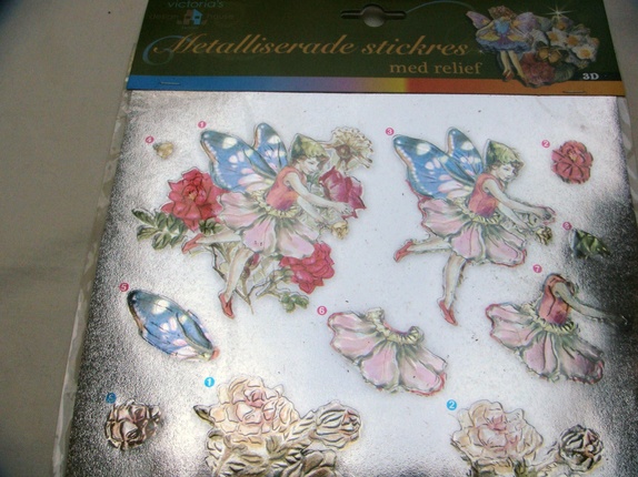 Det er tre motiver på arket to med alver og en med roser.Motivene er ferdig stanset ut ,så du slipper å skjære med skalpell.Bare å trykke ut.Det er også merket med tall rekkefølgen ,som skal følges for å få rett 3D effekt.Motivene har også ferdig relief så man trenger ikke prege de for å få mer liv enn bare 3D effekten.
