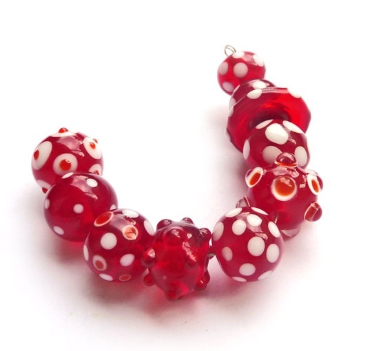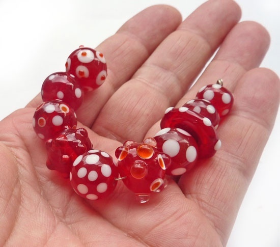 Sett - herlige røde håndlagde perler - lampworkperler til smykkelaging