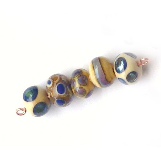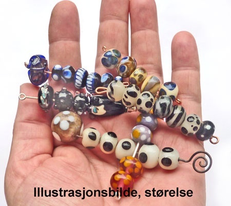 Sett - nydelige beige/blålilla håndlagde perler - lampworkperler til smykkelaging