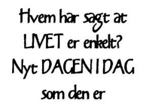 Tekst: "Hvem har sagt at livet er enkelt? Nyt dagen i dag som den er"