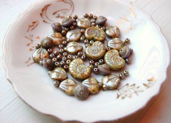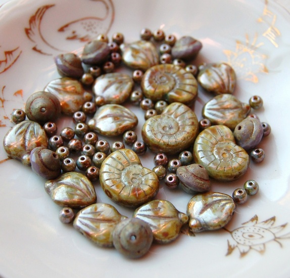 Tsjekkiske glassperler i ulike størrelser og fasonger.