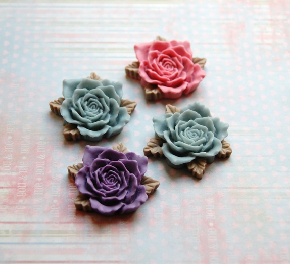 4 luciteblomsterMåler ca 3.5 - 4 cm.(og 8 tvinna ringer)