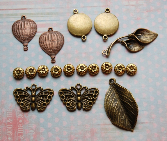 Smykkedeler i messing.Luftballonger, sommerfugler, blader m.m.Du får det du ser på bildet.