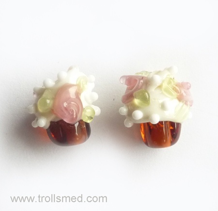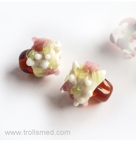 Trollsmeden lager selv både porselensperler og lampworkperler (perler som smeltes på åpen flamme av glass-stenger og formes mens glasset er mykt og seigt)