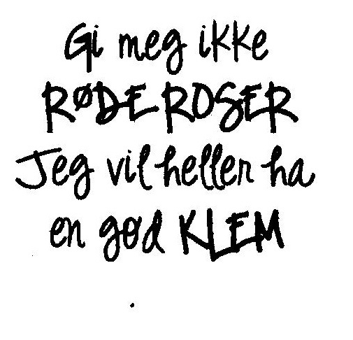 Tekst: "Gi meg ikke røde roser, jeg vil heller ha en god klem"