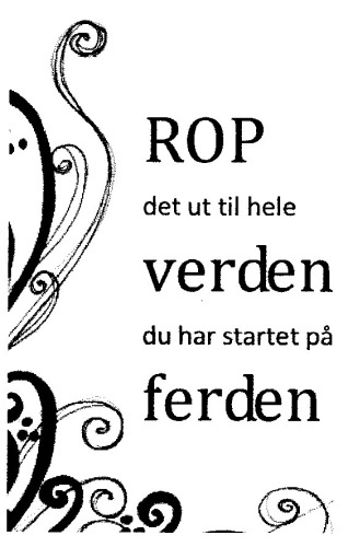 Tekst: "Rop det ut til hele verden du har startet på ferden"