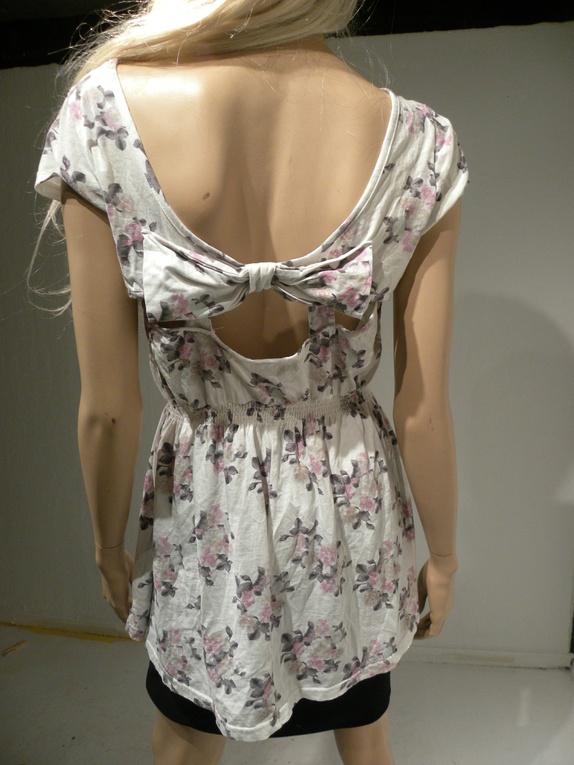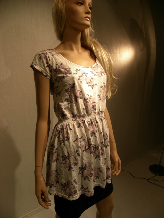 Kjole med blomstermønster. str uk 14-eur 42, eller str 40 om den skal sitte litt ledig.Fin sløyfe-detalj på rygg. 100% Bomull