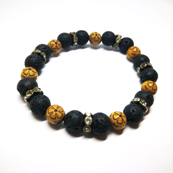 Kjempefint armbånd med brune perler i akryl, Lava perler (8 mm), og bronsefargede spacerbeads med glasskrystaller.