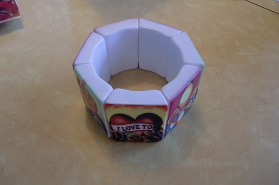 kult armbånd i plast med trykk fra old school tatoveringer, består av 7 firkanter 3cm x 4 cm. Arbåndet har strikk, så det passer de fleste:)