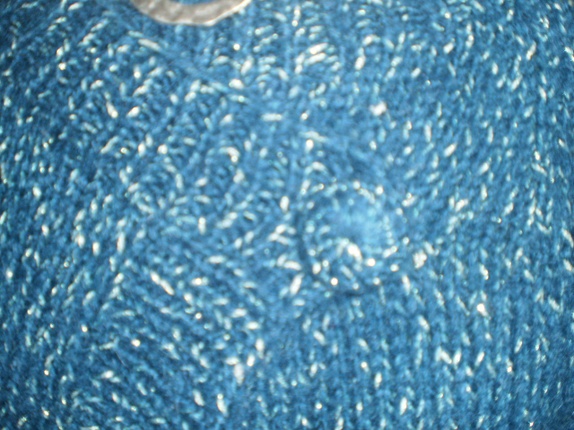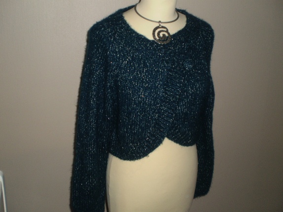 Strikket bolero i deilig tyrkis og sølvmelert garn, Den er myk og god.Brukt bare et par ganger,Str M/L