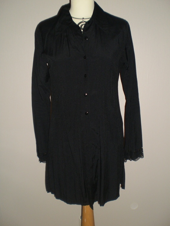 Sort "litt pyntet" langskjorte med blonder nederst på ermene. Ser helt ny ut. Str 36/38