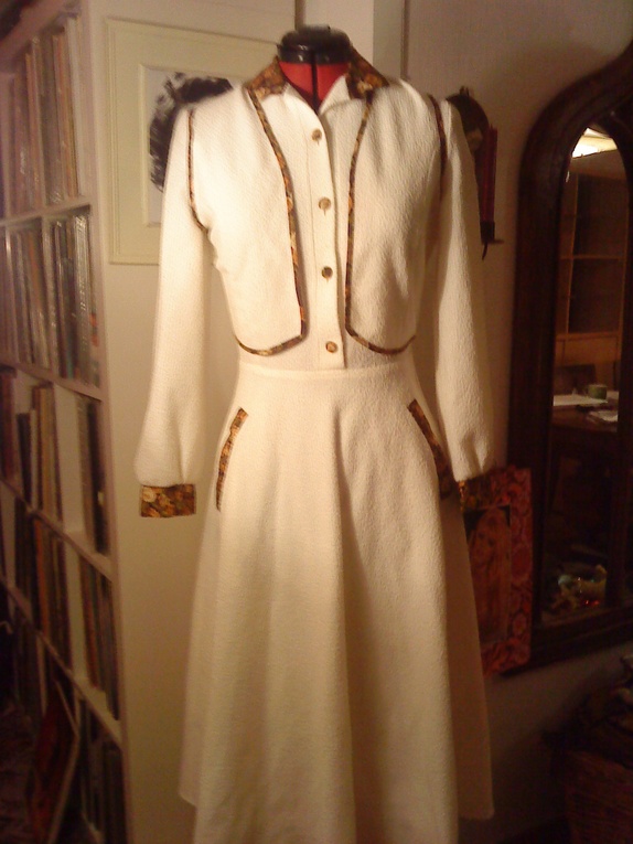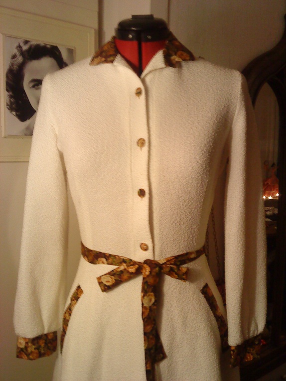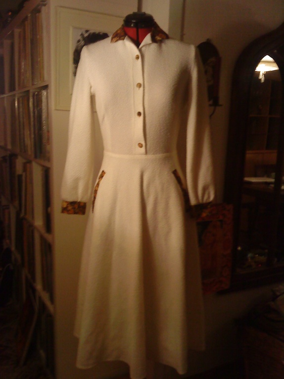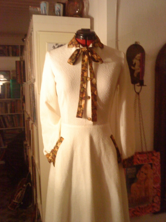 Hvit "Tiger"-kjole, med vest og knytebelte.