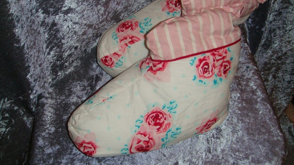 Tøflene er i 100% bomull,de har anti skli såler. Størrelse : one size Dame. ubrukt
