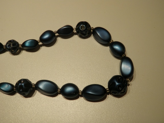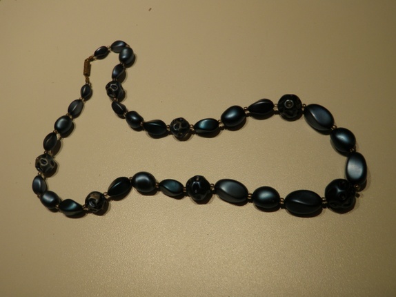 Retro halssmykke med sjøgrønne og vinrøde perler