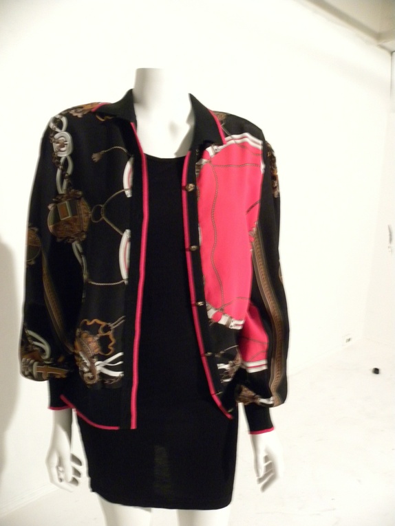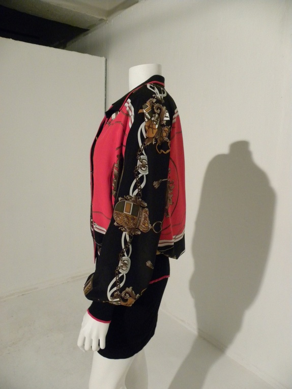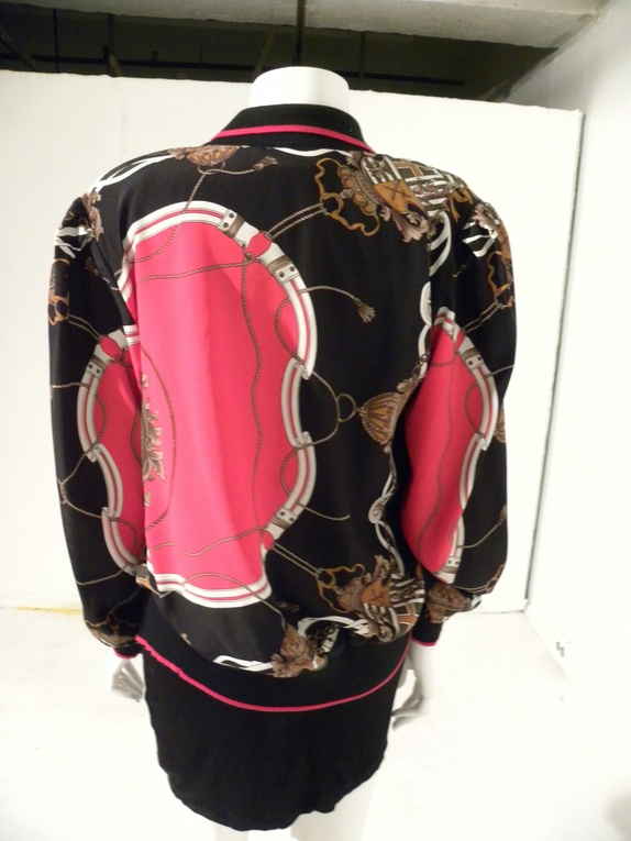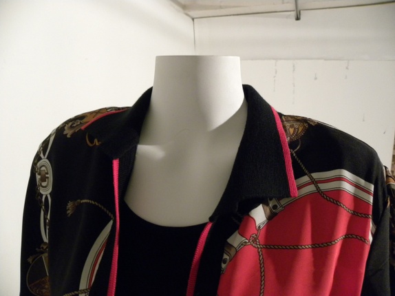 Vintage mønstrete jakke. str M. Ribbekant nederst, på kragen og på ermene. Jakken er lett og behagelig å ha på.