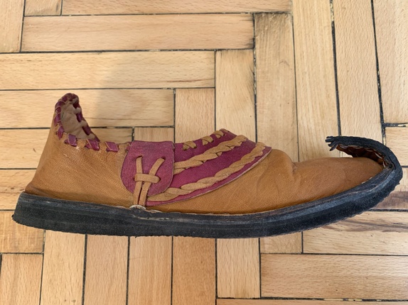 Selger tradisjonelle orientalske håndsydde sko fra Morokko. Både utside og innside er i skinn.