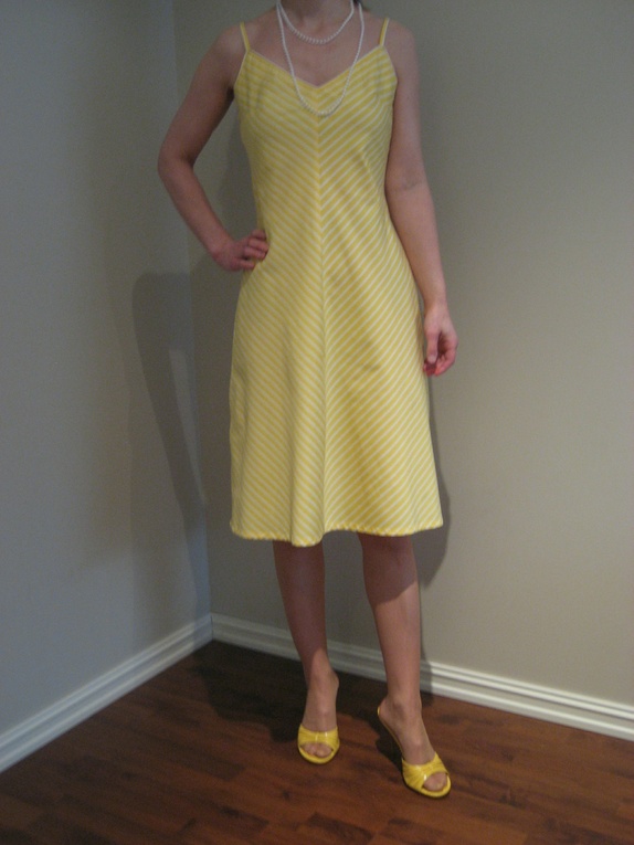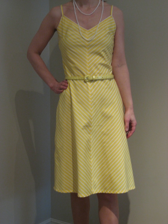 Søt kjole med gule og hvite striper i bomull. Kjolen er fin med belte, men dette følger ikke med desverre. Fra H&M.