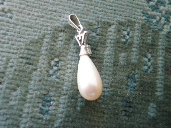 Søtt anheng med dråpeformet perle