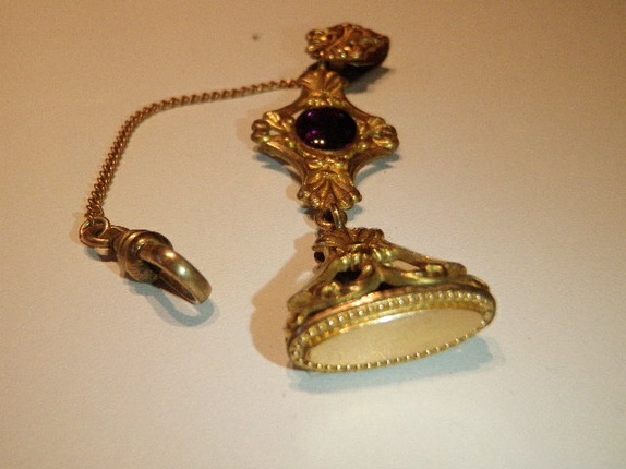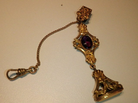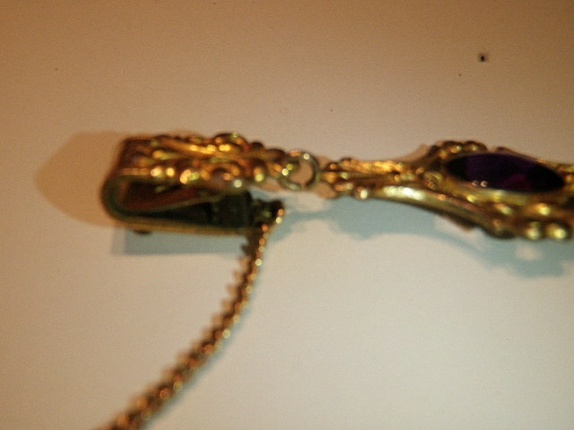 Vakkert gammelt smykke/slipsnål med lilla stein