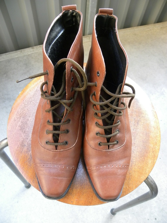 Vintage ankelsko med firkantet tupp. Merket str 40. Litt smale foran, så passer best en str 39,5. I god stand. Materiale: skinn